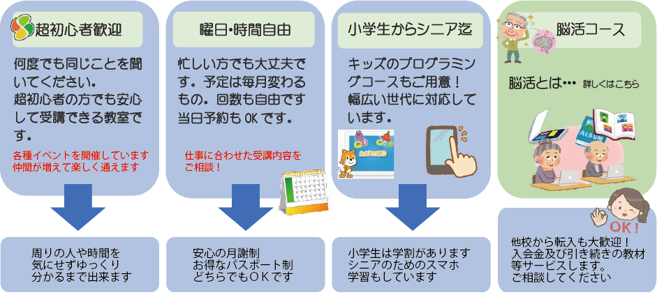 | 年齢が気になって私には無理、と思っている方、大丈夫です!好評の個人レッスンで確実に使いこなせます。 |